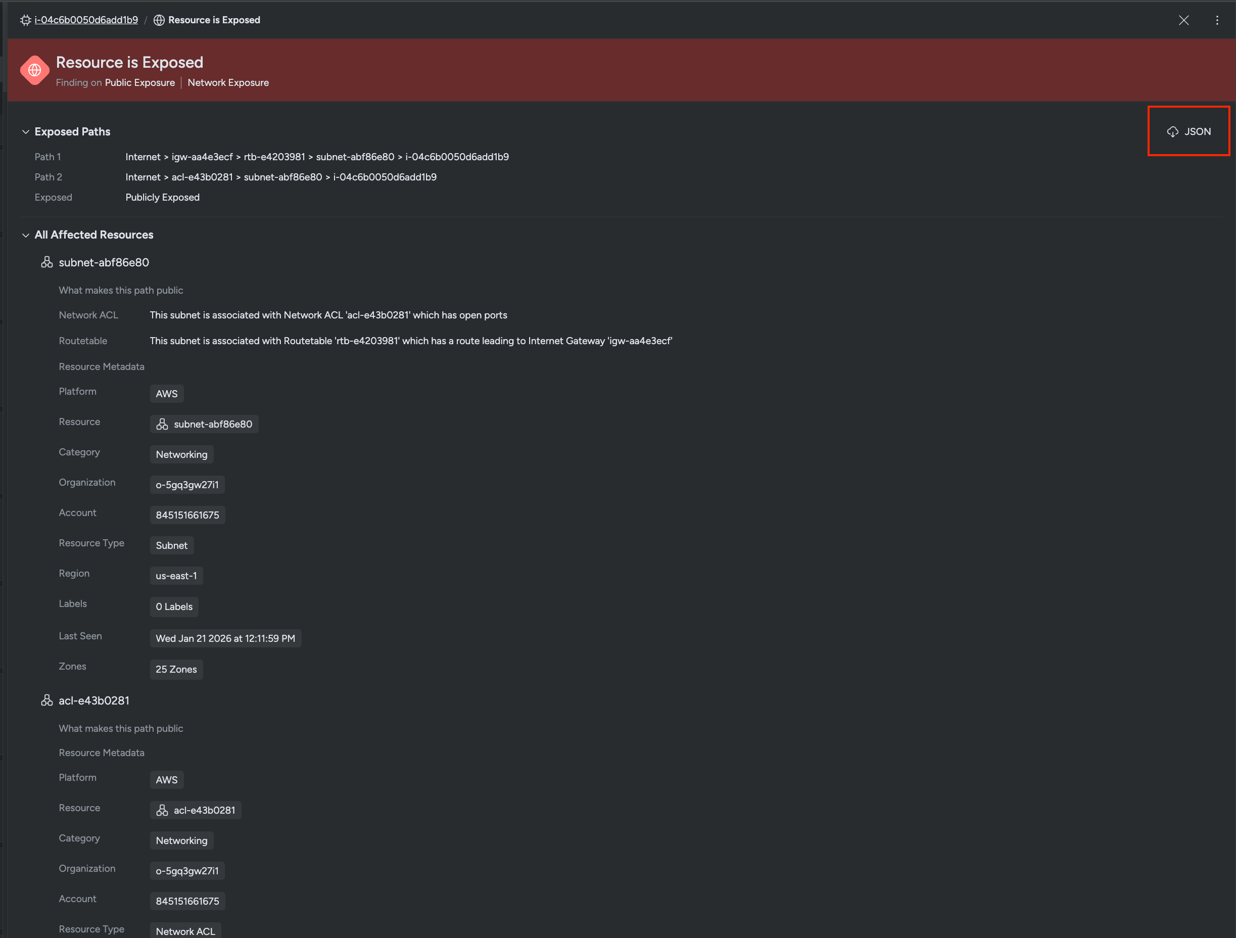 - Exposure Findings: List of specific paths through which the resource is exposed.