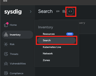 Inventory Search uses SYSQL (Sysdig Query Language) to query and retrieve information about exposed resources. SYSQL is a graph-based query language that allows you to explore relationships between resources in your infrastructure.