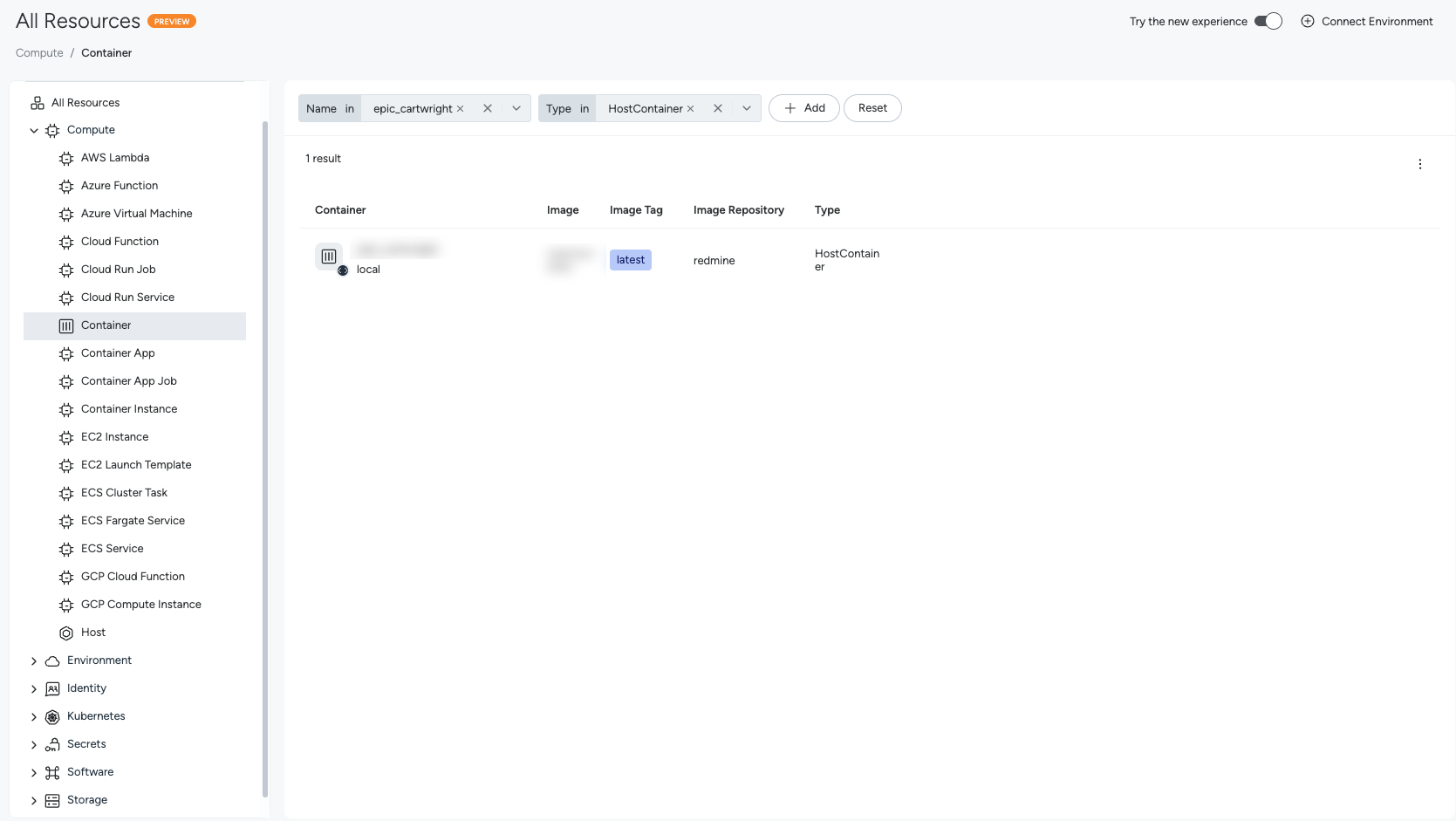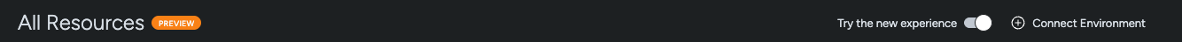 - From the left navigation, select Inventory > Resources. If it isn’t already enabled, switch to new experience using the Try the New Experience toggle in the top-right corner.
